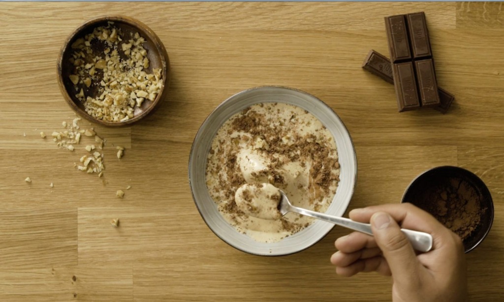 Deja macerar durante toda la noche. A la mañana siguiente solo tienes que meter la mezcla en el congelador… ¡y ya tendrás un delicioso helado con un delicado sabor a nueces!